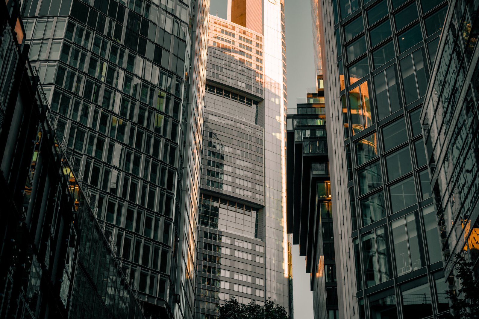 Die Perspektive: Die Vielschichtigkeit der verschiedenen Fassadenstrukturen erzeugt eine faszinierende Tiefe, die den Betrachter direkt in die Schluchten der Metropole zieht. Es ist ein Bild, das die Energie und Komplexität Frankfurts feiert und gleichzeitig eine fast meditative Ordnung in der urbanen Dichte findet. Ideal für hochwertige Business-Räumlichkeiten oder als moderner Akzent im privaten Wohnbereich.