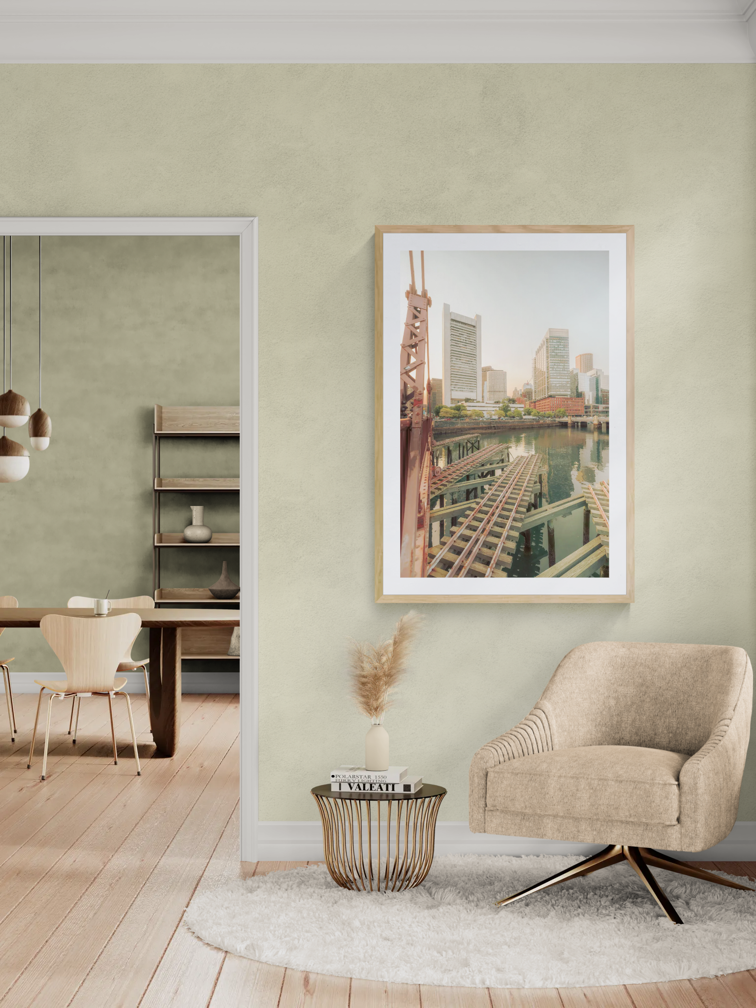 Die Perspektive: Ein kühler Morgen am Fort Point Channel in Boston. Diese Aufnahme fängt die Seele der Stadt ein: Die historischen Holz- und Stahlkonstruktionen der alten Eisenbahnbrücken im Vordergrund erzählen von der industriellen Vergangenheit, während im Hintergrund die gläsernen Monumente des modernen Finanzdistrikts in den Morgenhimmel ragen. Es ist ein Bild über den Lauf der Zeit und die Perspektive, die wir darauf einnehmen.