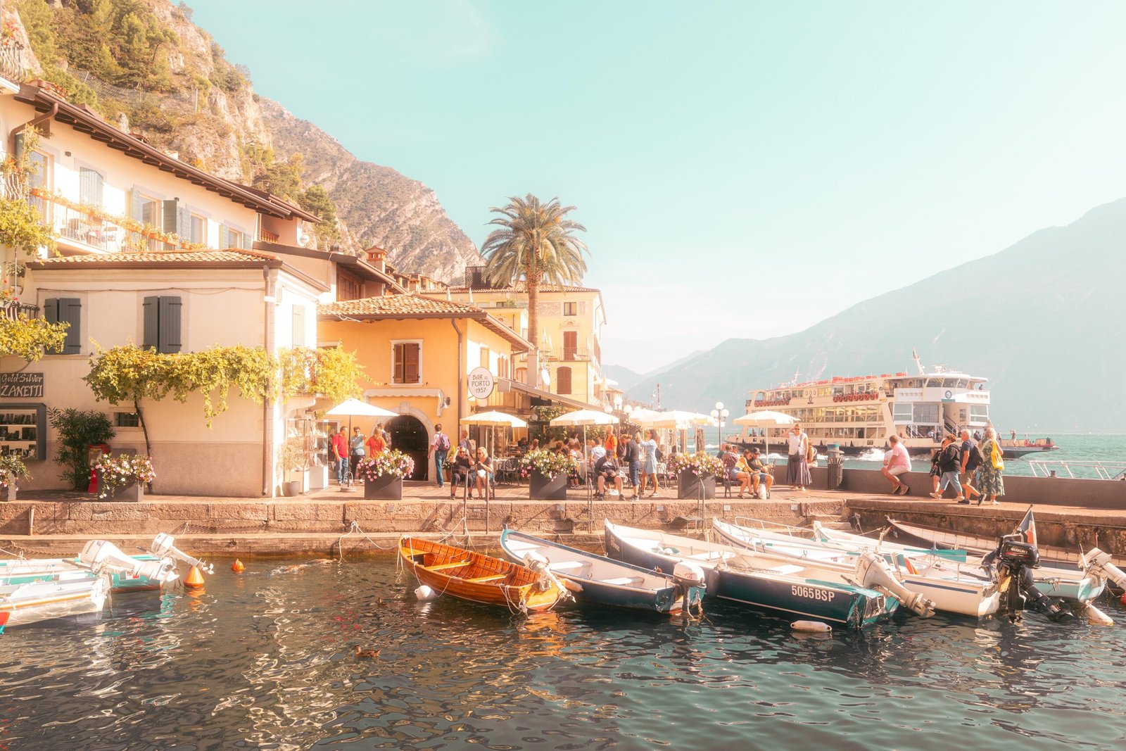 Die Perspektive: In den schmalen Gassen und am Hafen von Limone scheint die Zeit anders zu fließen. Dieses Bild fängt den Moment ein, in dem die Mittagssonne die ockerfarbenen Fassaden zum Leuchten bringt und das tiefe Blau des Sees in sanfte Pastelltöne verwandelt.