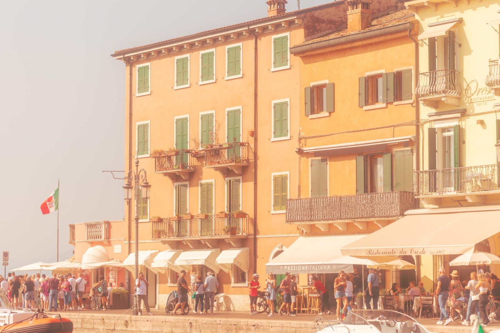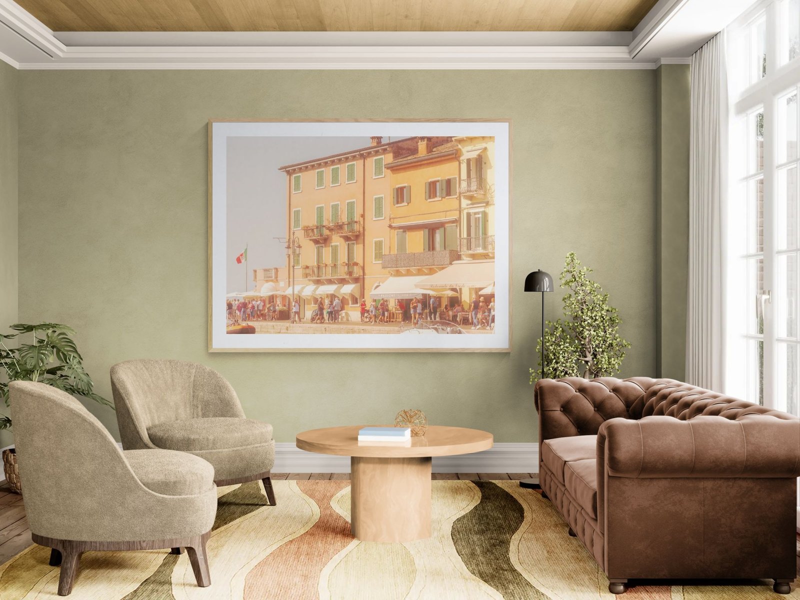 Die Perspektive: Es ist dieser eine Moment an der Promenade, in dem sich alles zusammenfügt: das warme Licht, das auf die ockerfarbenen Fassaden fällt, das leise Flattern der Trikolore im Wind und das unbeschwerte Flanieren der Menschen. Dieses Bild ist für mich die Essenz des italienischen Sommers. Es dokumentiert nicht nur einen Ort, sondern ein Lebensgefühl – die „Passeggiata“, das Sehen und Gesehenwerden in der goldenen Stunde am Wasser.