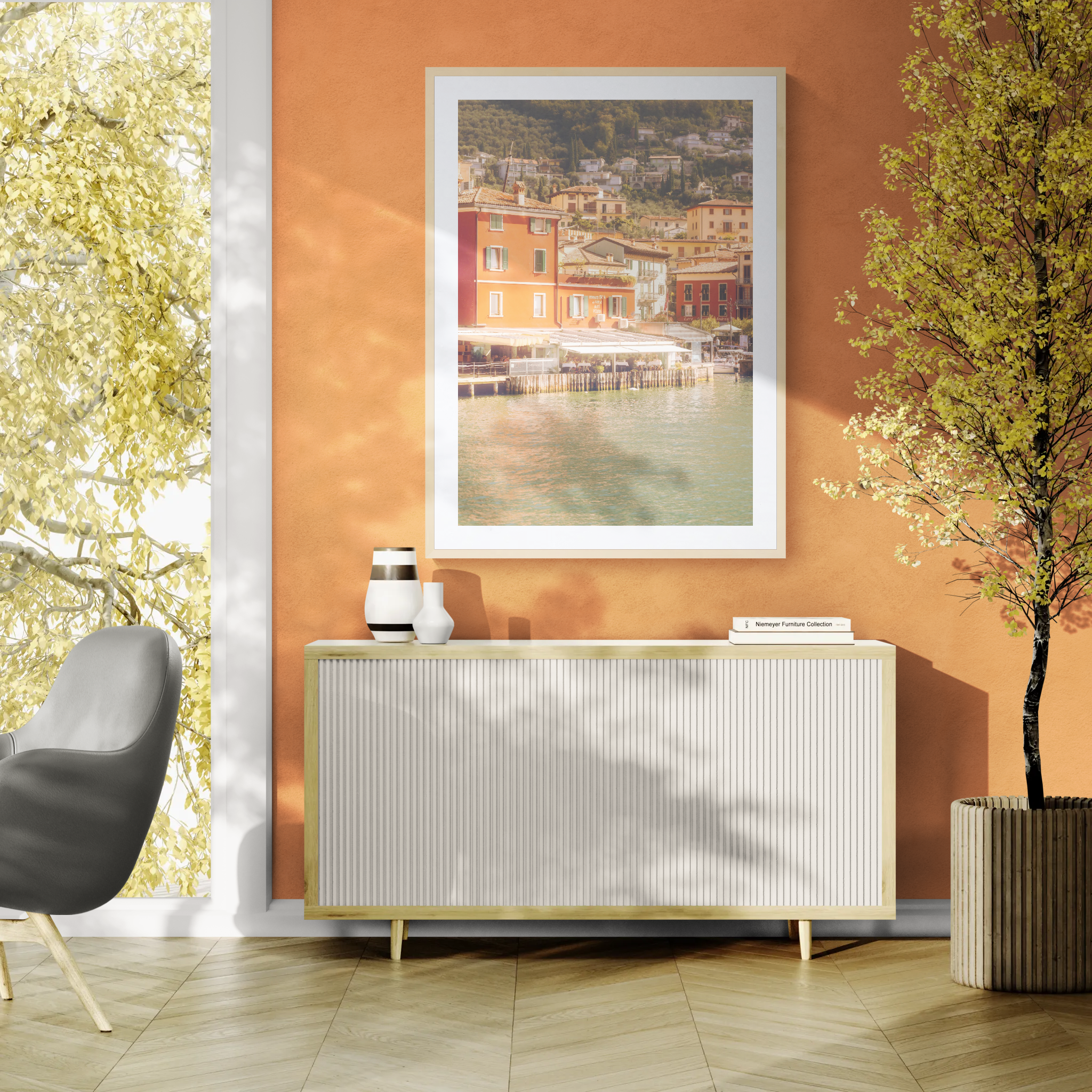Die Perspektive: Es war der Moment der Rückkehr. Nach einem Tag in den Gassen von Limone fing ich diesen Blick von der Fähre aus ein, als wir langsam in den Hafen von Malcesine einliefen. Das markante, rote Gebäude am Ufer, das von der warmen Nachmittagssonne angestrahlt wird, wirkte wie eine Einladung, die Zeit für einen Moment anzuhalten. Diese Fotografie ist eine Hommage an die zeitlose Architektur und das besondere Licht Norditaliens.